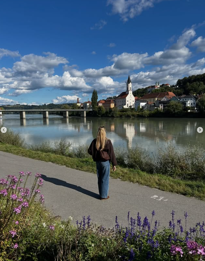 ... an Passau und das perfekte Herbst-Outfit mit unserem Must-Have Wollblouson in wunderschönem Schokobraun! 🤎🍂🍁 Dazu coole Jeans mit Tacshen-Details und Banana-Bag in braun. Genießt die goldenen Herbsttage & kommt gerne bei uns vorbei! ☕️👜✨